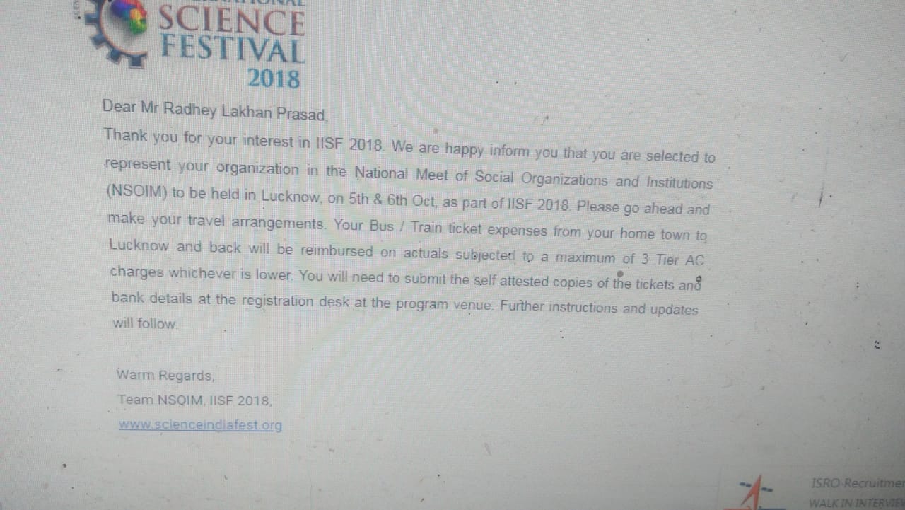 India International Science Festival 2018 Lucknow. India international sciencefest.org